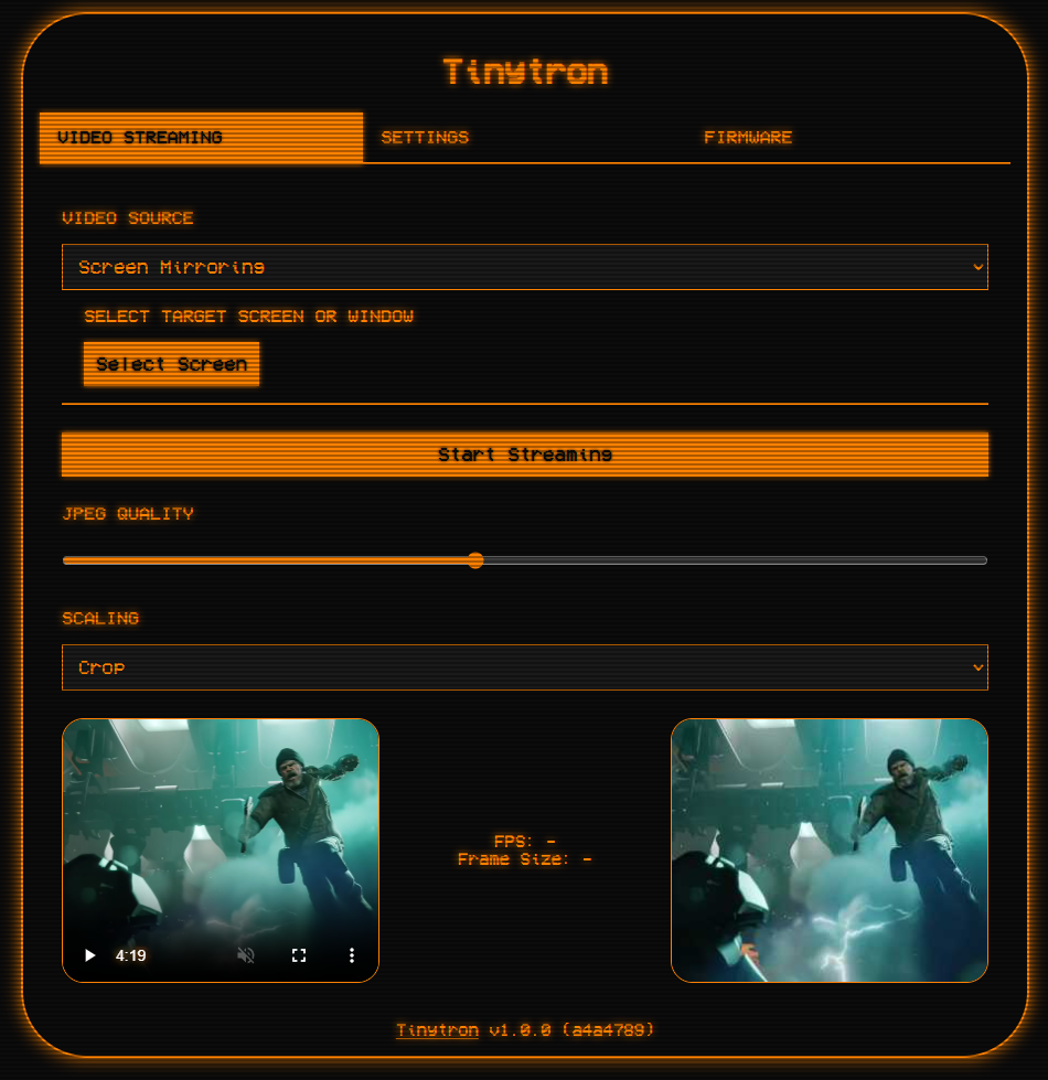 Because the ESP32 on the Tinytron is only capable of insecure connections, and screen mirroring requires https, your browser will (rightfully) block this streaming mode.